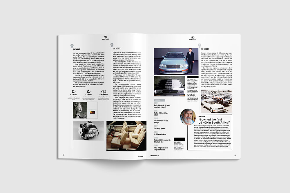 xler8AD’s founder Crispian Brown was approached to work on the concept and pitch for a customer magazine for Toyota and Lexus South Africa.